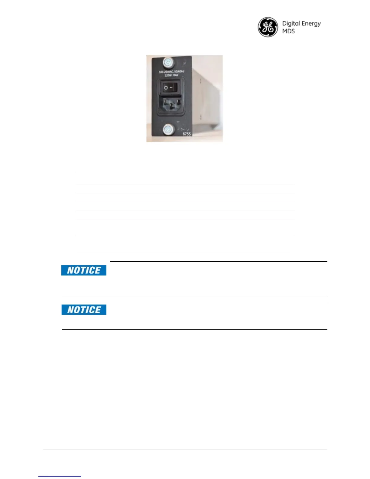 Table 6-2. 6755 AC Power Supply Module Specifications