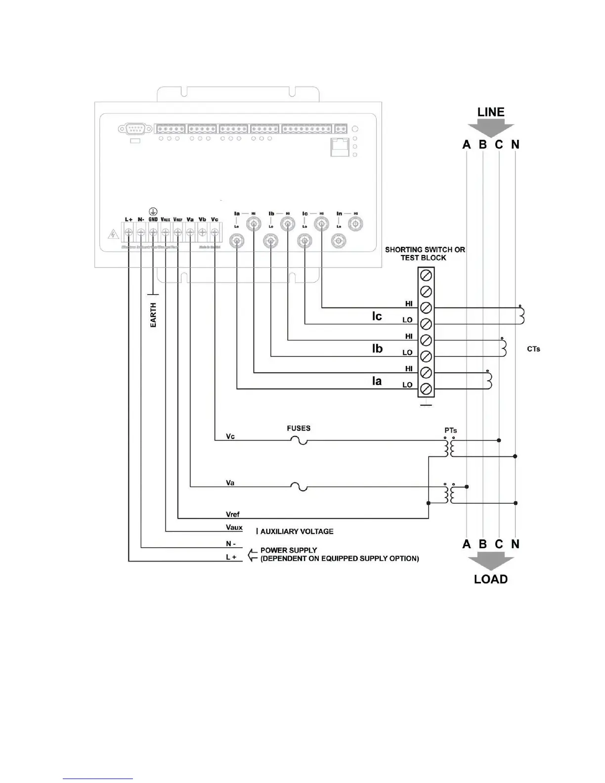 Figure 4-8: 3-Phase, 4-Wire, 2.5 Element with 2 PTs and 3 CTs