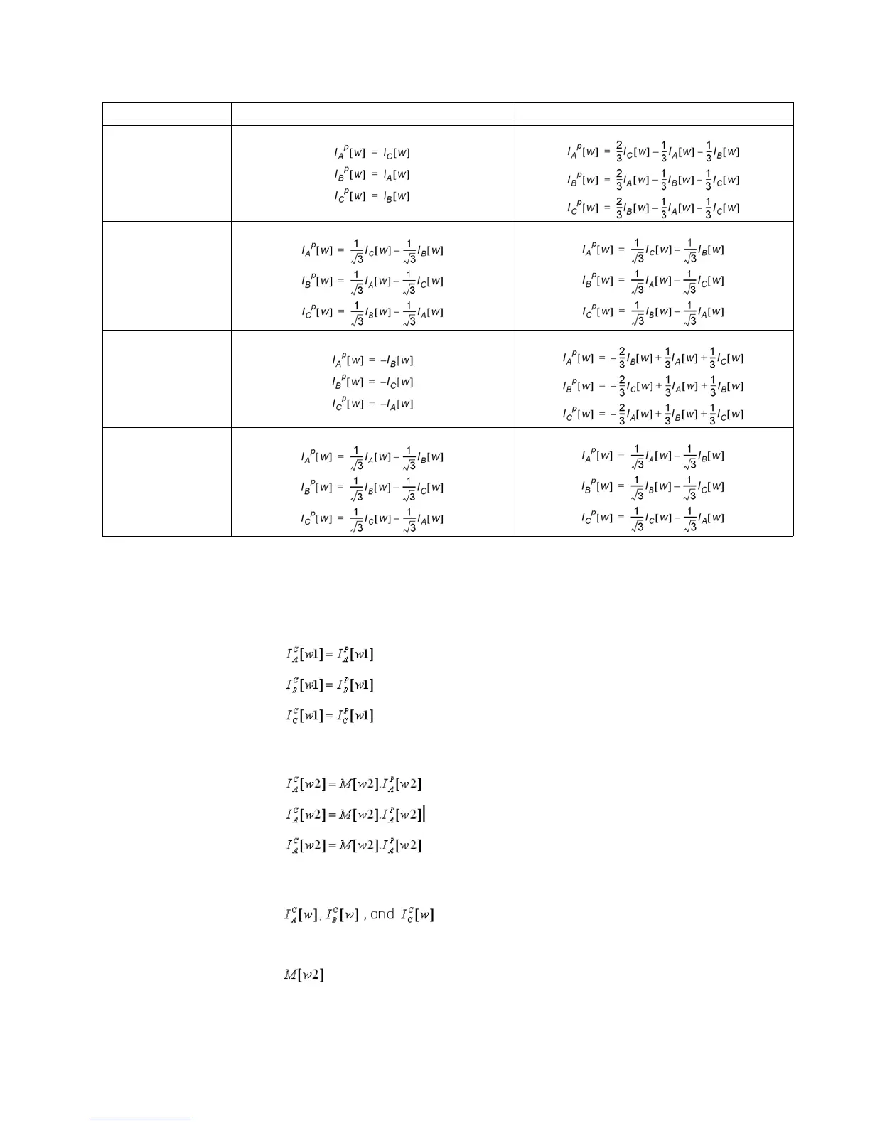 - magnitude, phase and zero sequence compensated winding w phase currents