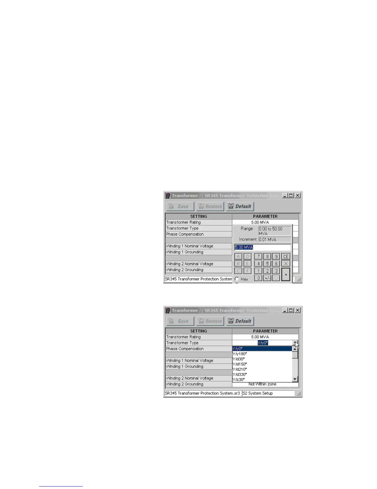 5. For setpoints requiring non-numerical pre-set values (e.g. Transformer type below),