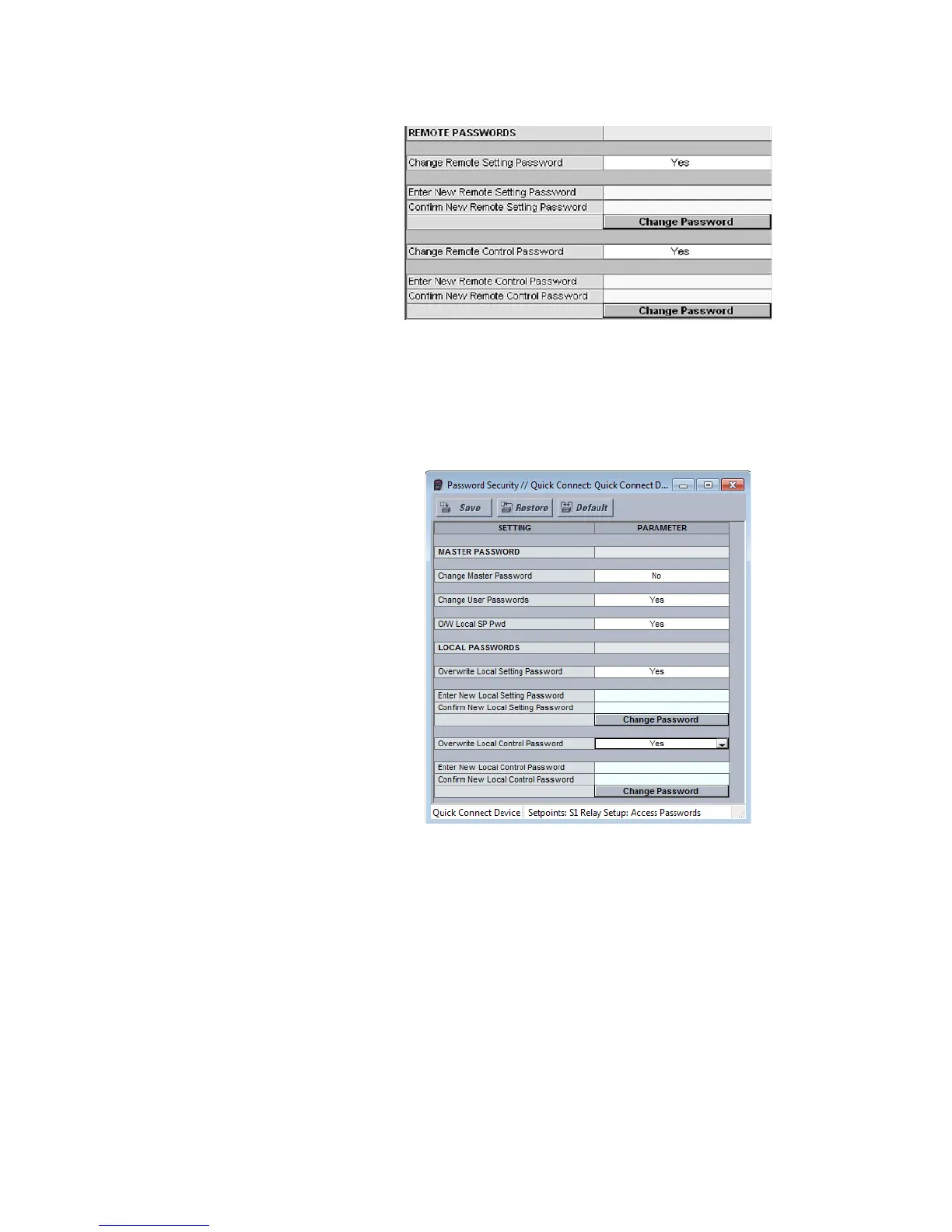 5. Initial setup of the Local Setpoint and Local Control passwords requires the Master