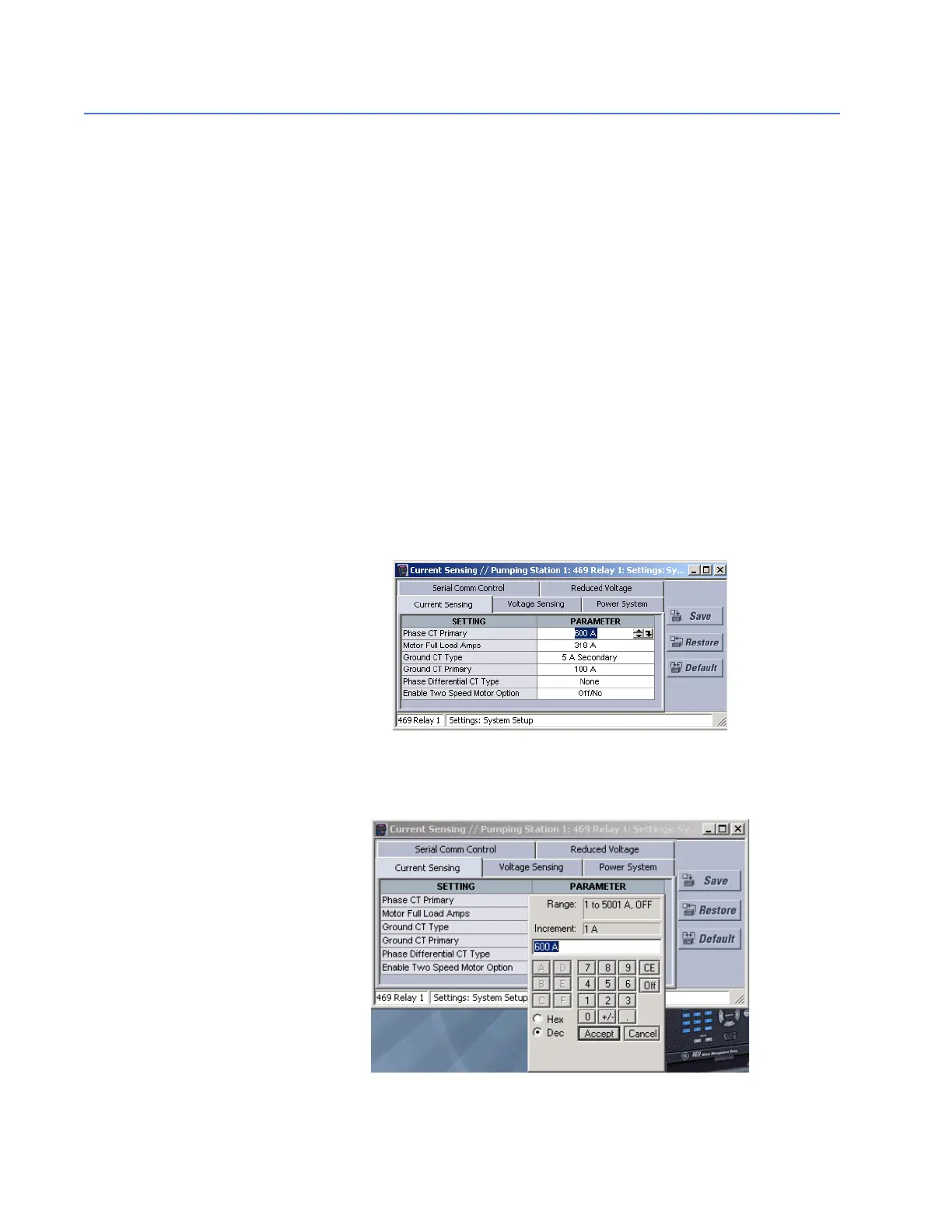 PHASE CT PRIMARY settings by clicking anywhere in the
