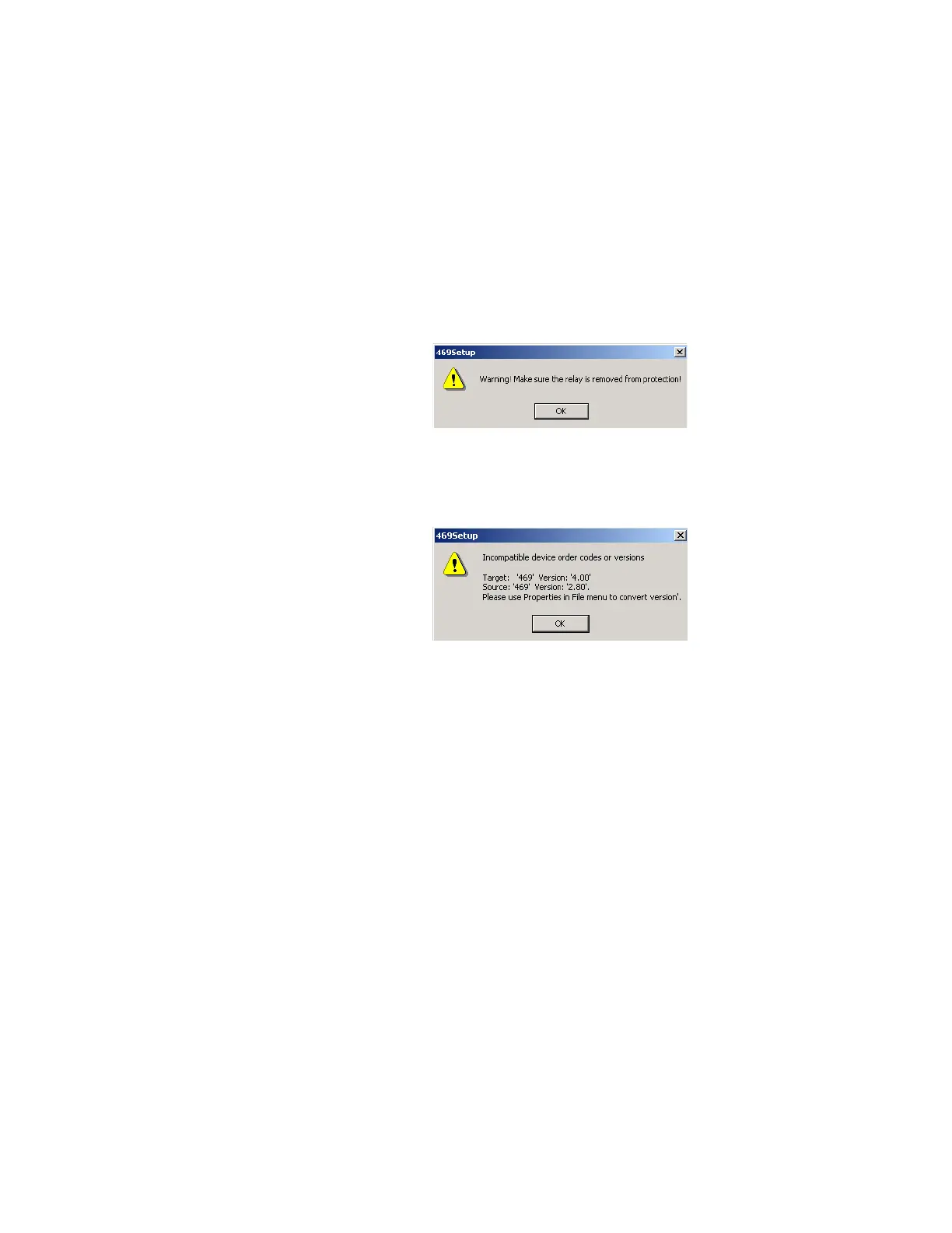 The EnerVista 469 Setup software will generate the following warning message, to remind