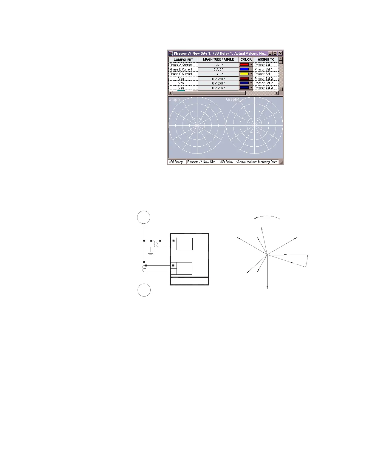All phasors calculated by 469 relays are rotating phasors that maintain the correct phase