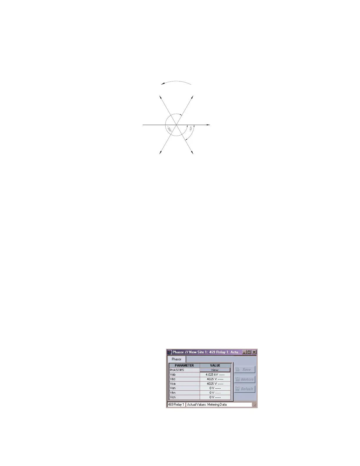 A2 METERING DATA ZV PHASORS menu: