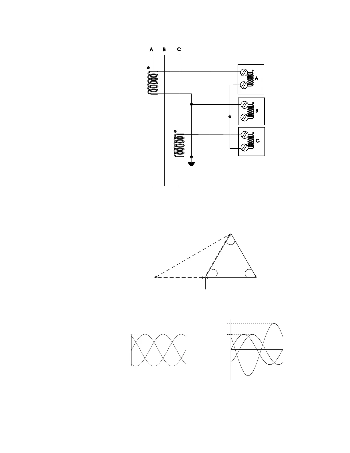two CTs. The diagram illustrates the two possible configurations. If one phase is reading