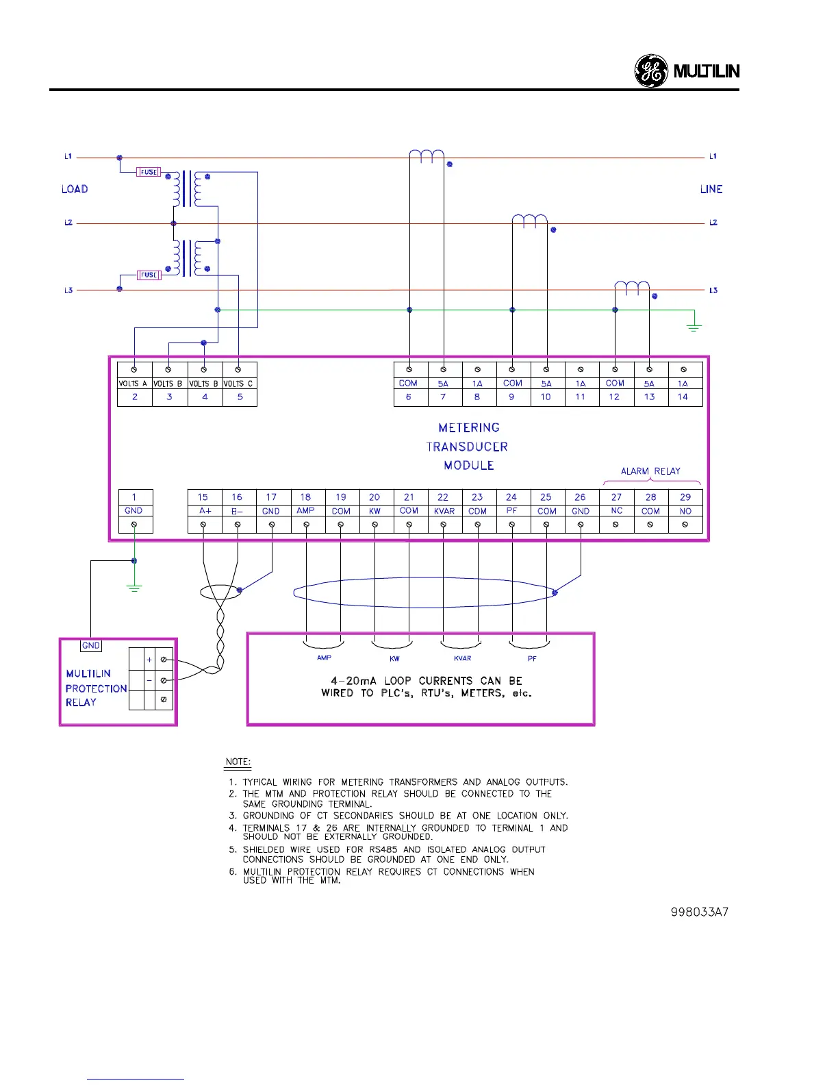 Figure 2.8A Open Delta VT and CT MTM Typical Wiring