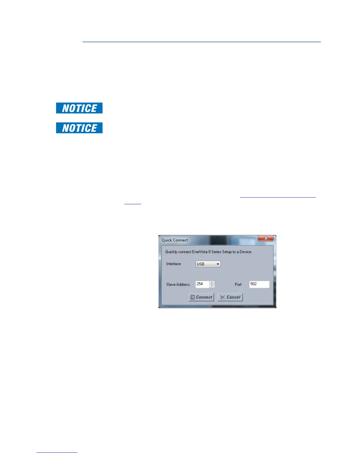 From the EnerVista 8 Series Setup software the Quick Connect button can be used to