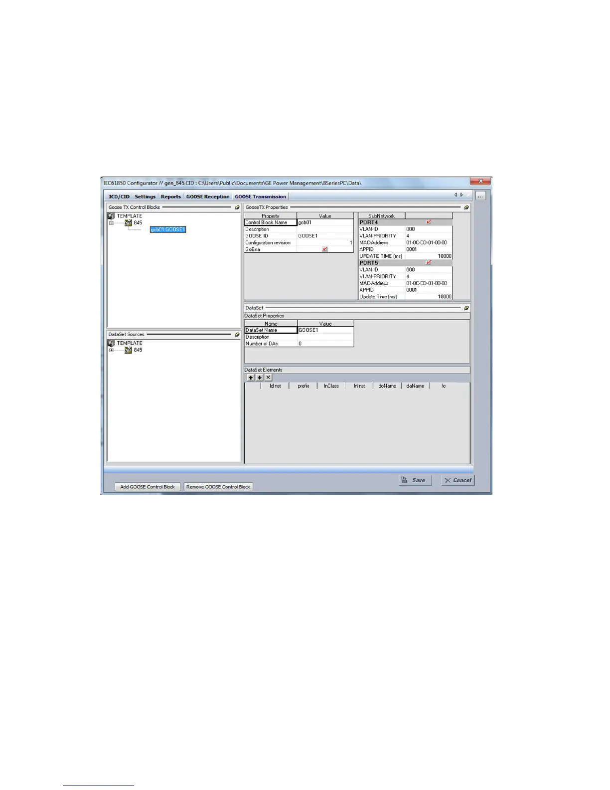 maximum of three GOOSE control blocks can be added. The GOOSE Configuration has two