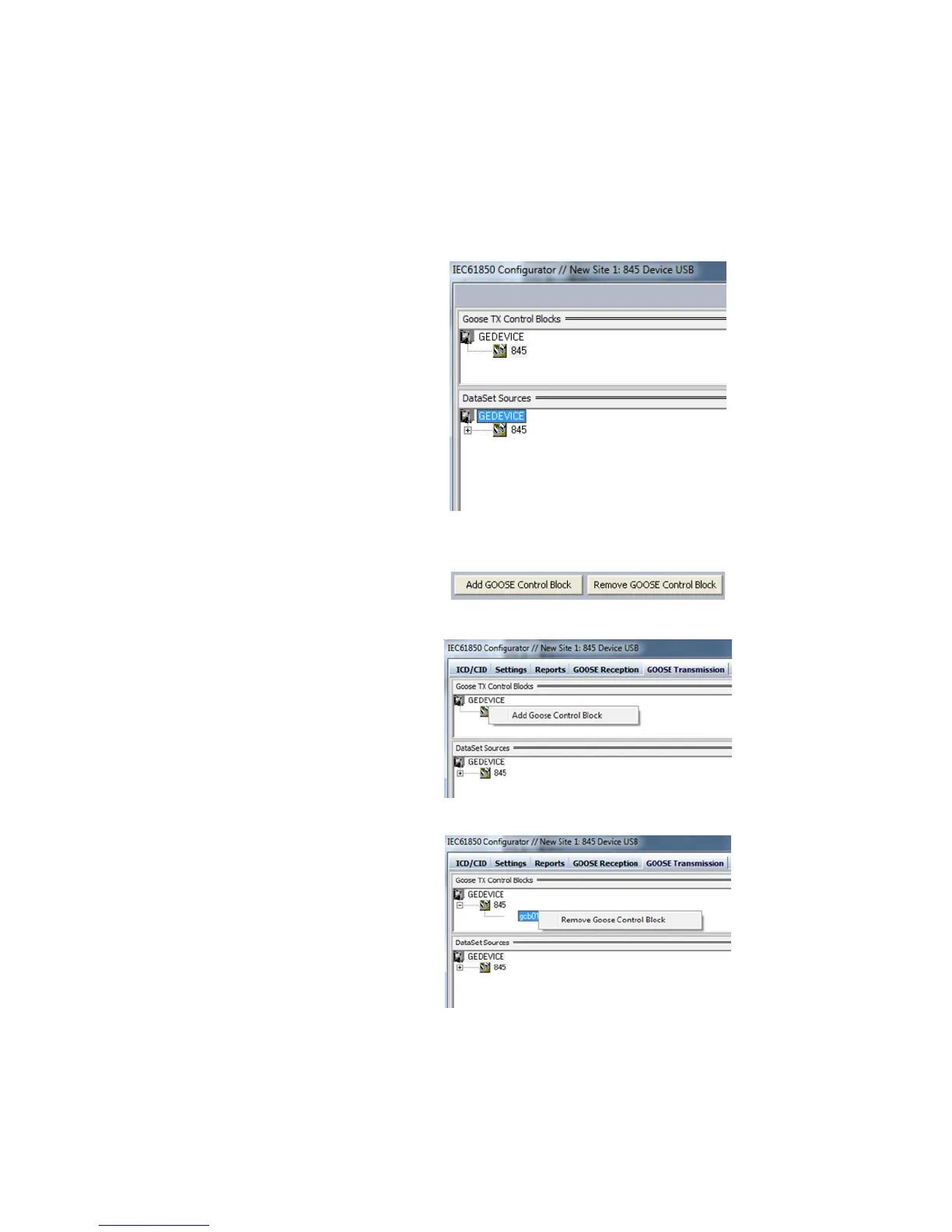 • Note that a GOOSE Control block can also be added by right clicking on “845” (or your