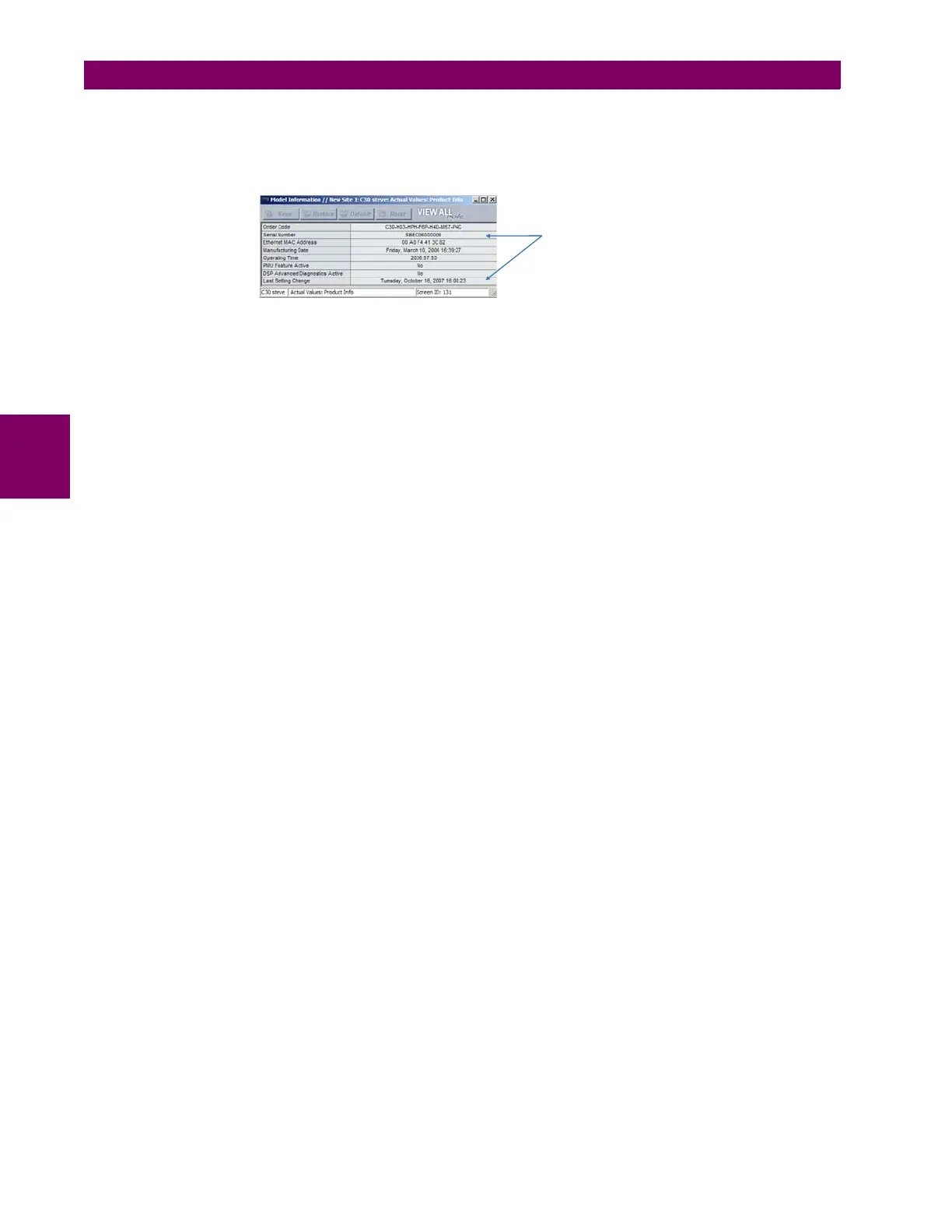 ACTUAL VALUES ÖØ PRODUCT INFO Ö MODEL INFORMATION ÖØ SERIAL NUMBER