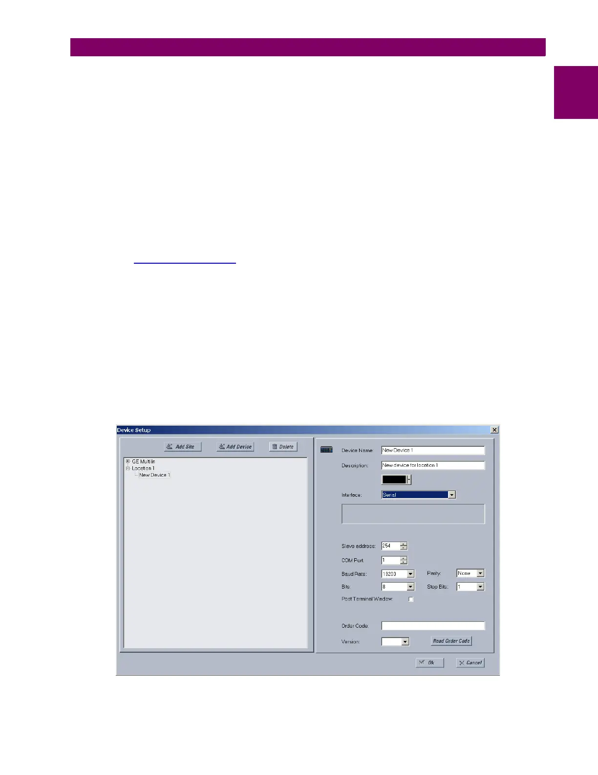 5. The new site will appear in the upper-left list in the EnerVista UR Setup window. Click the Device Setup button then