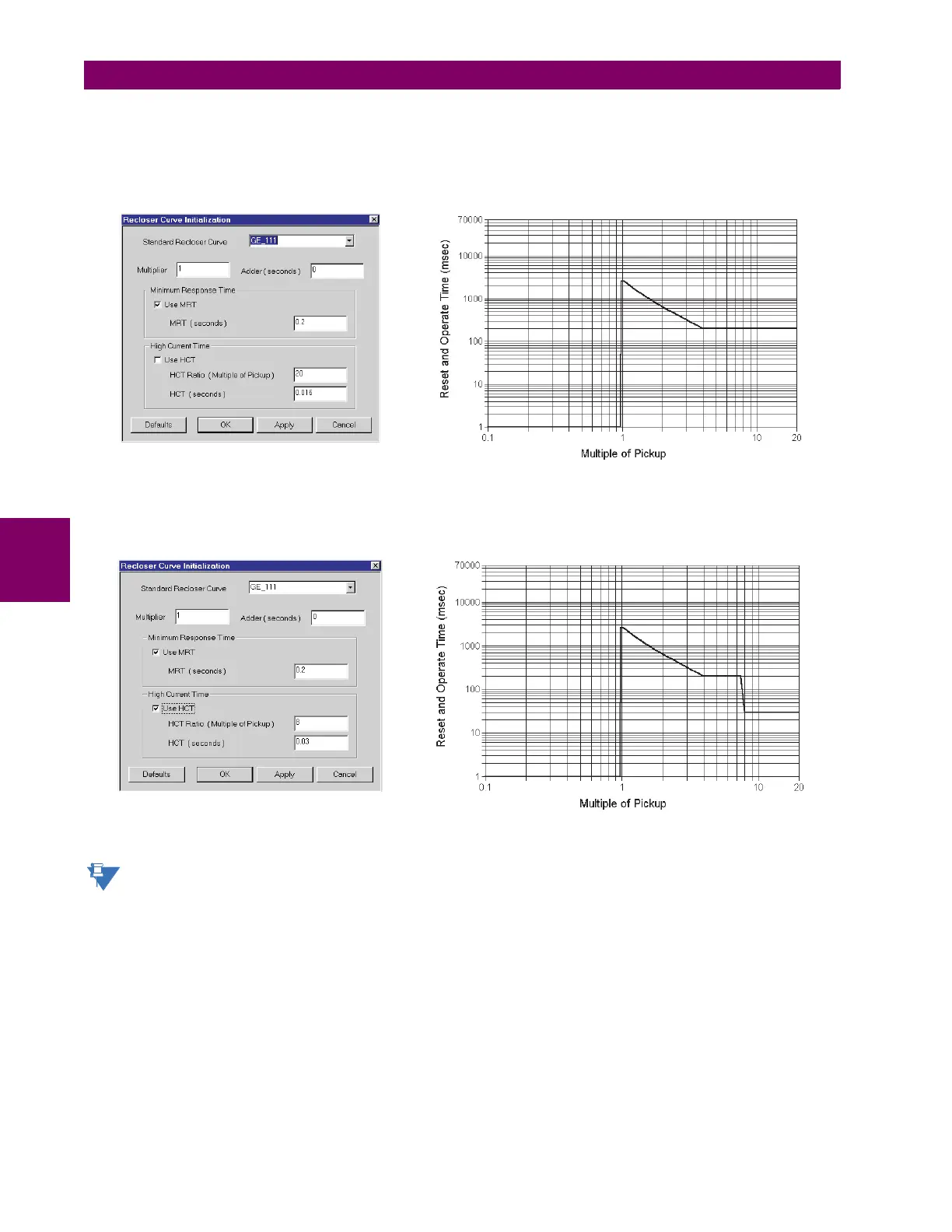 enabled at eight (8) times pickup with an operating time of 30 ms. At approximately four (4) times pickup, the curve operat-
