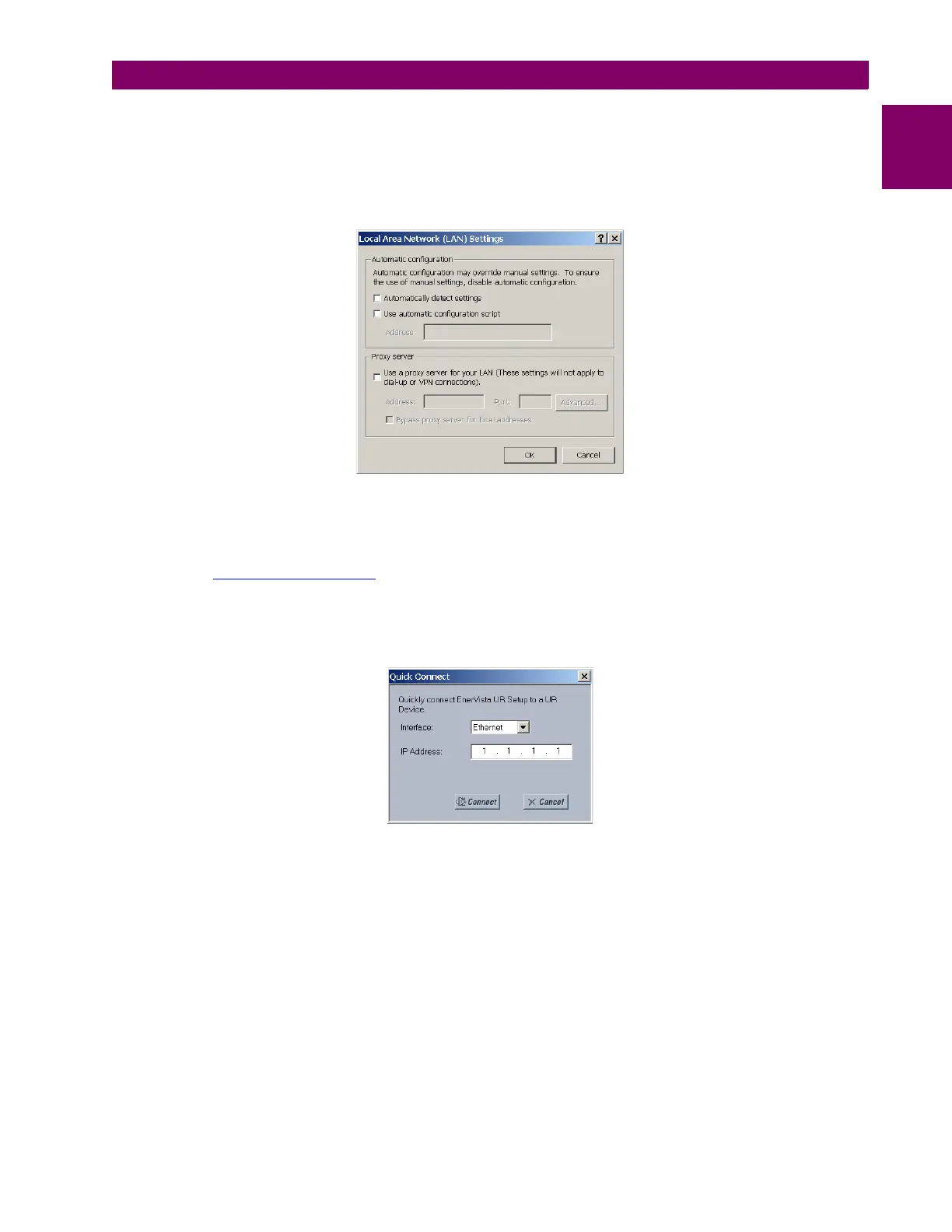 Before using the Quick Connect feature through the Ethernet port, it is necessary to disable any configured proxy settings