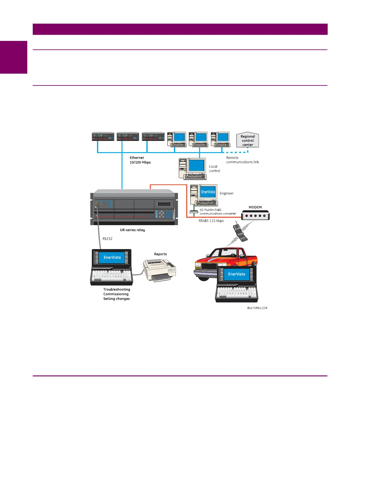 The EnerVista UR Setup software communicates to the relay via the faceplate RS232 port or the rear panel RS485 / Ether-