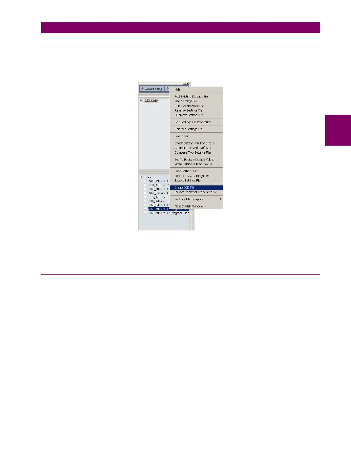 1. Right-click the connected UR-series relay or settings file and select Create ICD File.