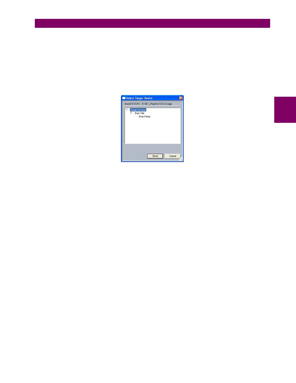 6. The software will prompt for the target device. Select the target device from the list provided and click Send. The new