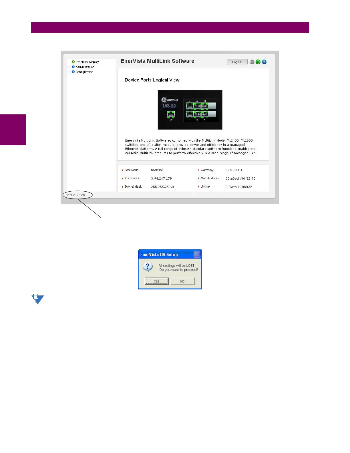 The following popup screen will appear warning that the settings will be lost when the firmware is upgraded.