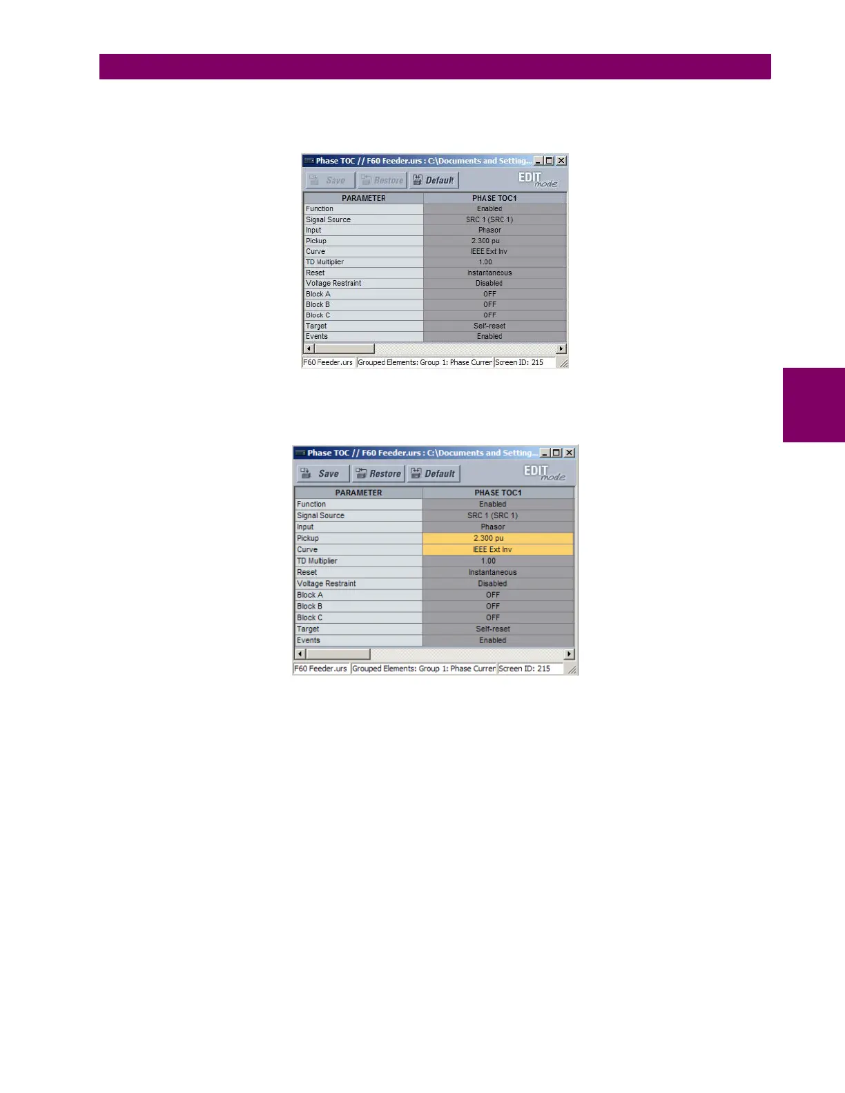 the settings window will also indicate that EnerVista UR Setup is in EDIT mode. The following example shows the