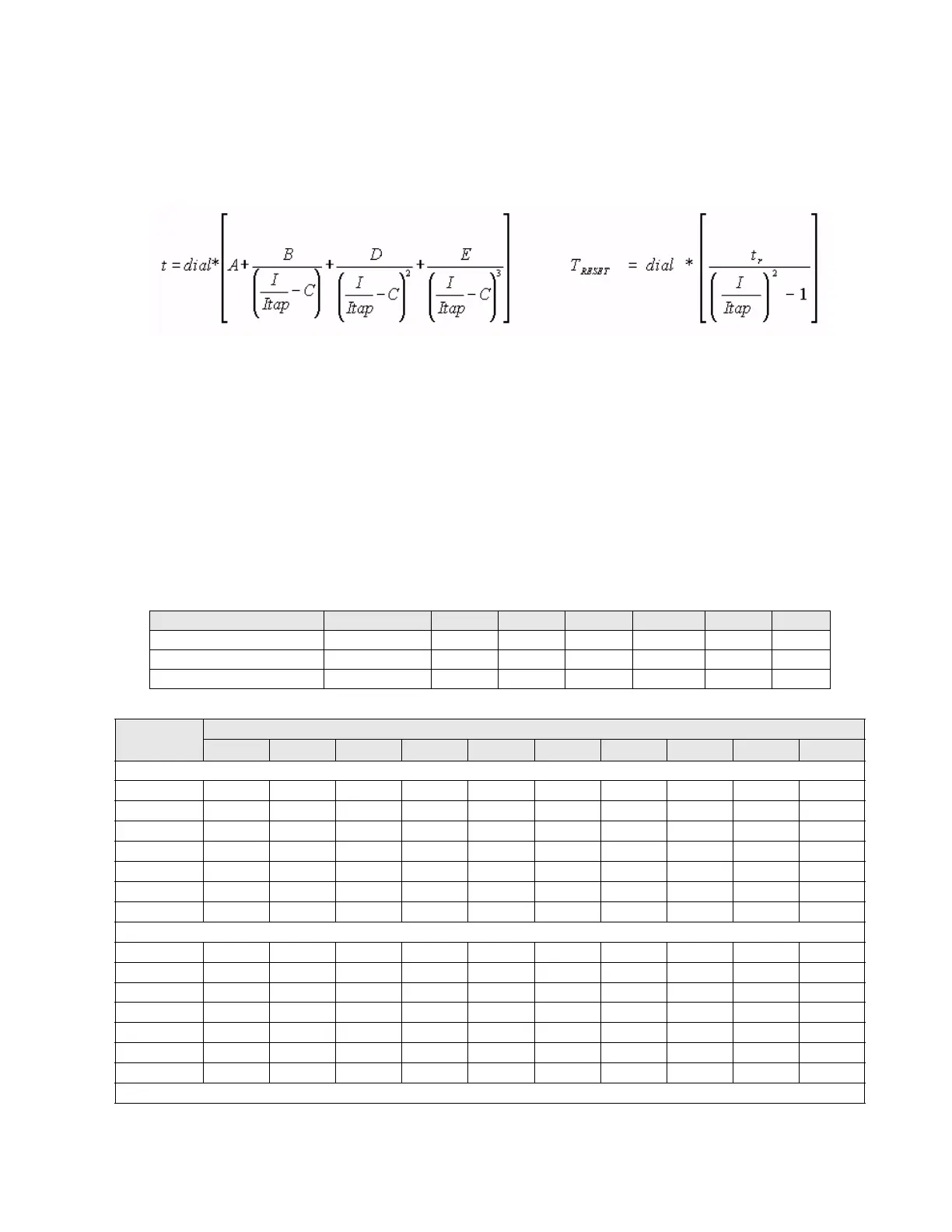 This family of curves follows the time response of the General Electric IAC electromechanical relays. The following formulas
