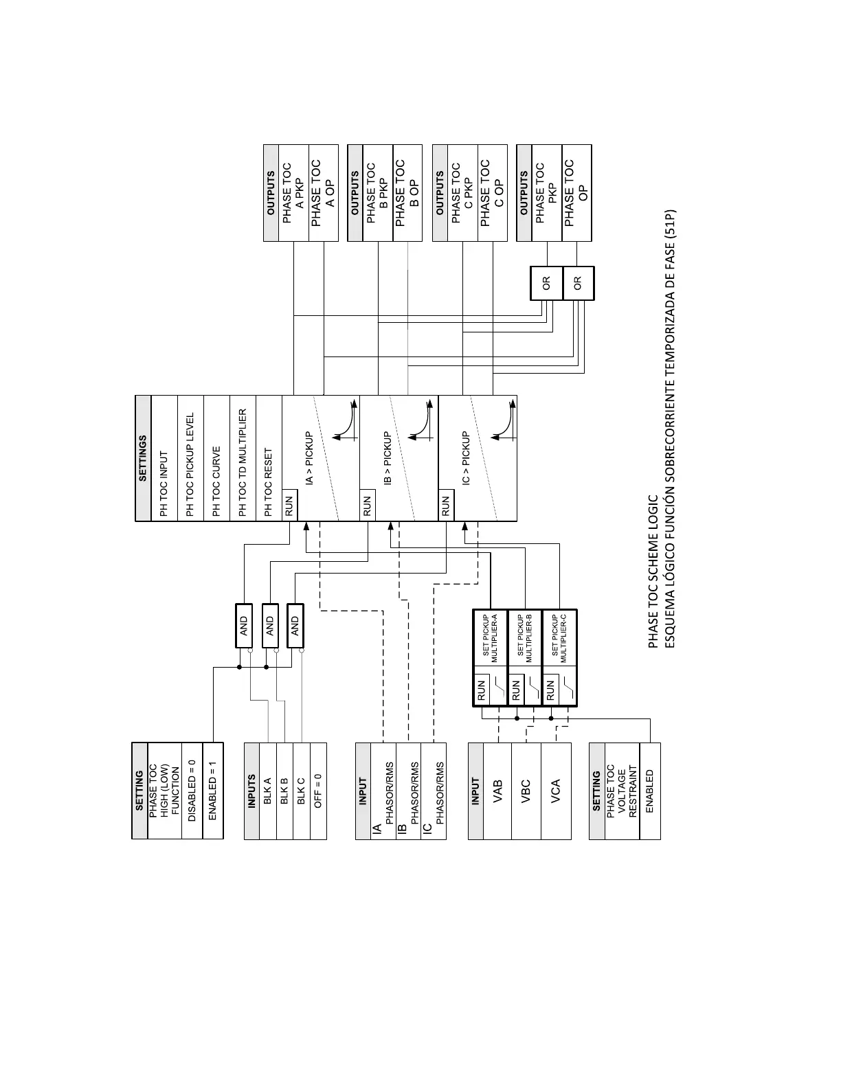 The following diagram shows the logic scheme followed by high range and low range time overcurrent elements (51PH and 51PL)