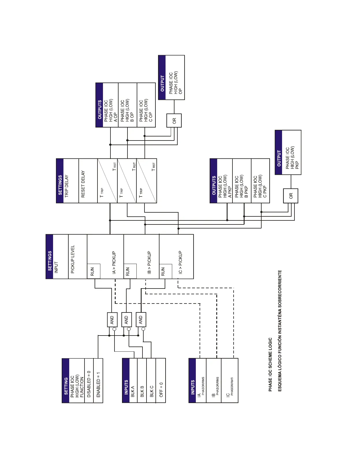 The following figure shows the logic scheme diagram for high range and low range Instantaneous overcurrent elements