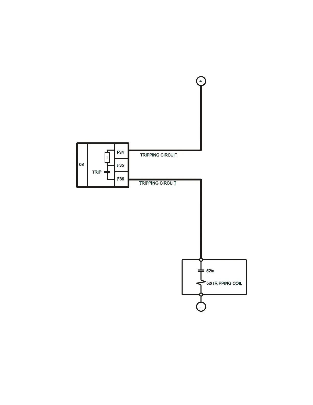 Circuit latching setting wiring the external circuit to terminals F34 and F36.
