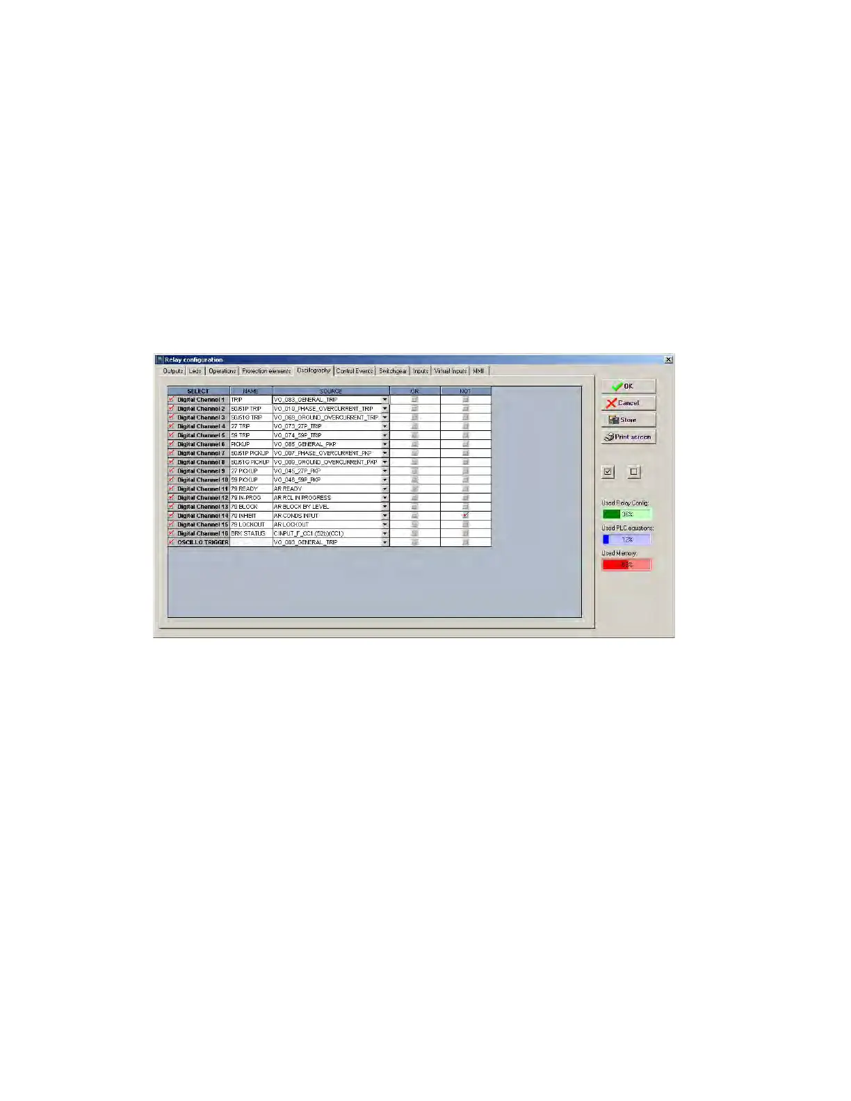 NOTE This screen is used for the configuration of digital channels and oscillography trigger. The rest of parameters,