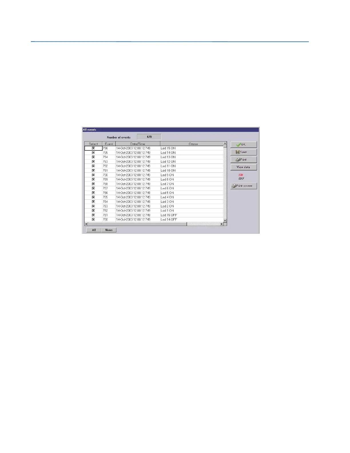 By selecting this option, the F650 provides a general list of all snapshot events stored in the relay up to the request