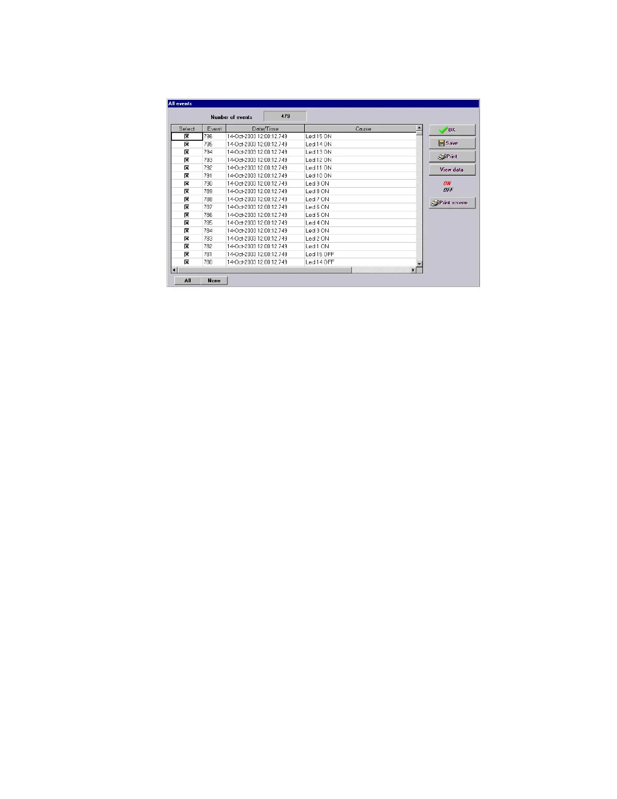 This screen is identical to the previous ones. The difference is that this screen displays only control events, i.e., those events