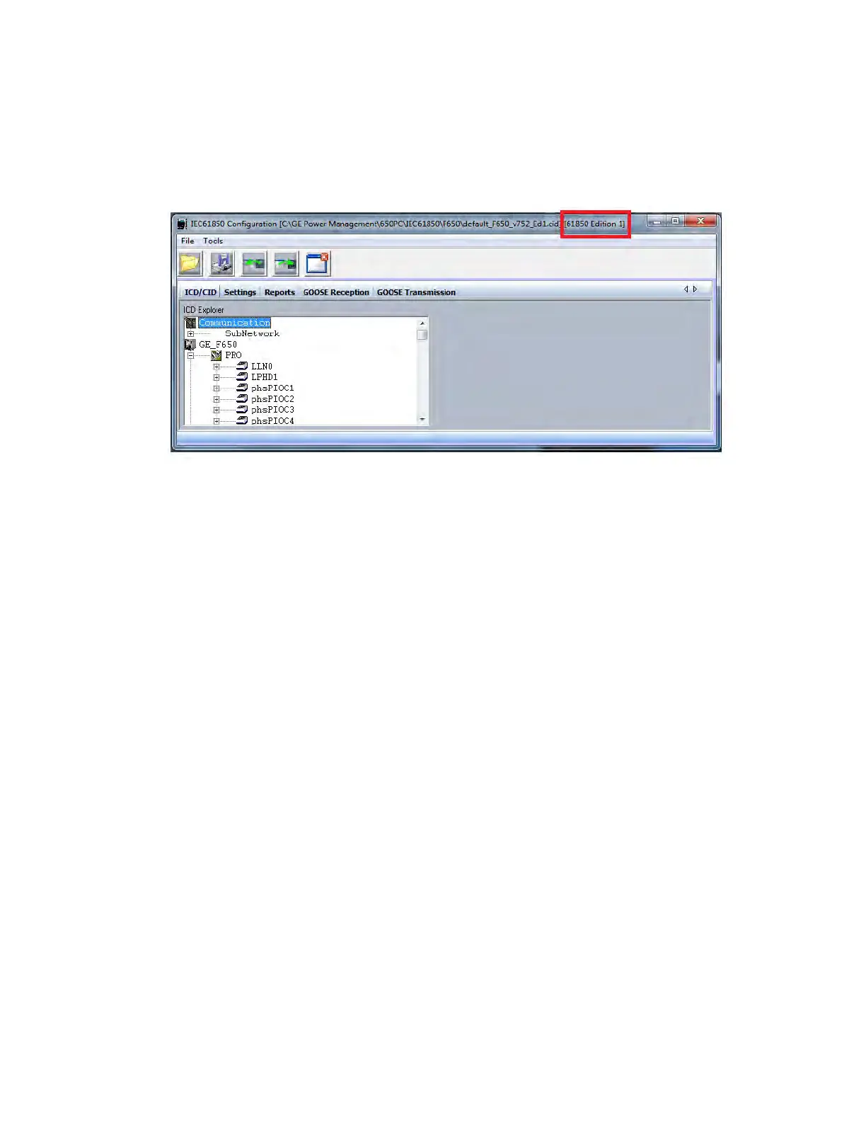 4. Check the title bar of the CID file to determine the IEC 61850 version, as shown in the figure below.