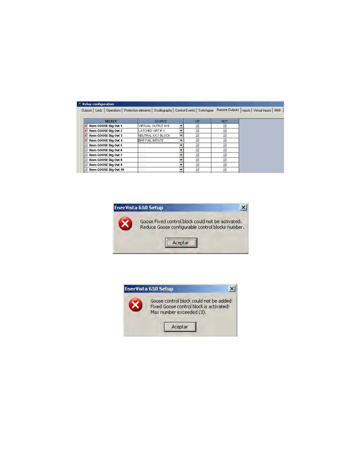 configurable transmission GOOSEs the following error is shown: