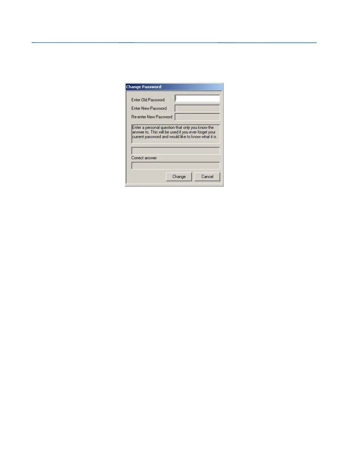 When the operator enters a new password for the first time, he/she should also enter a personal question that only they