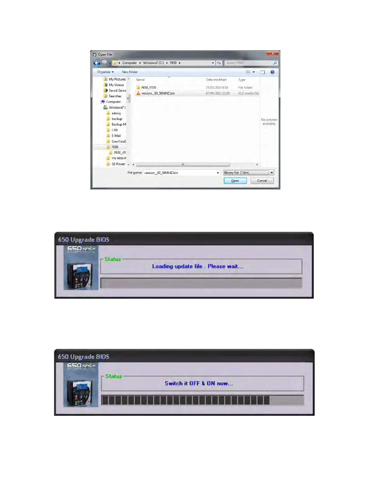 15. Then the program shows a message requiring switch OFF and ON the relay while the progress bar is in course, to start
