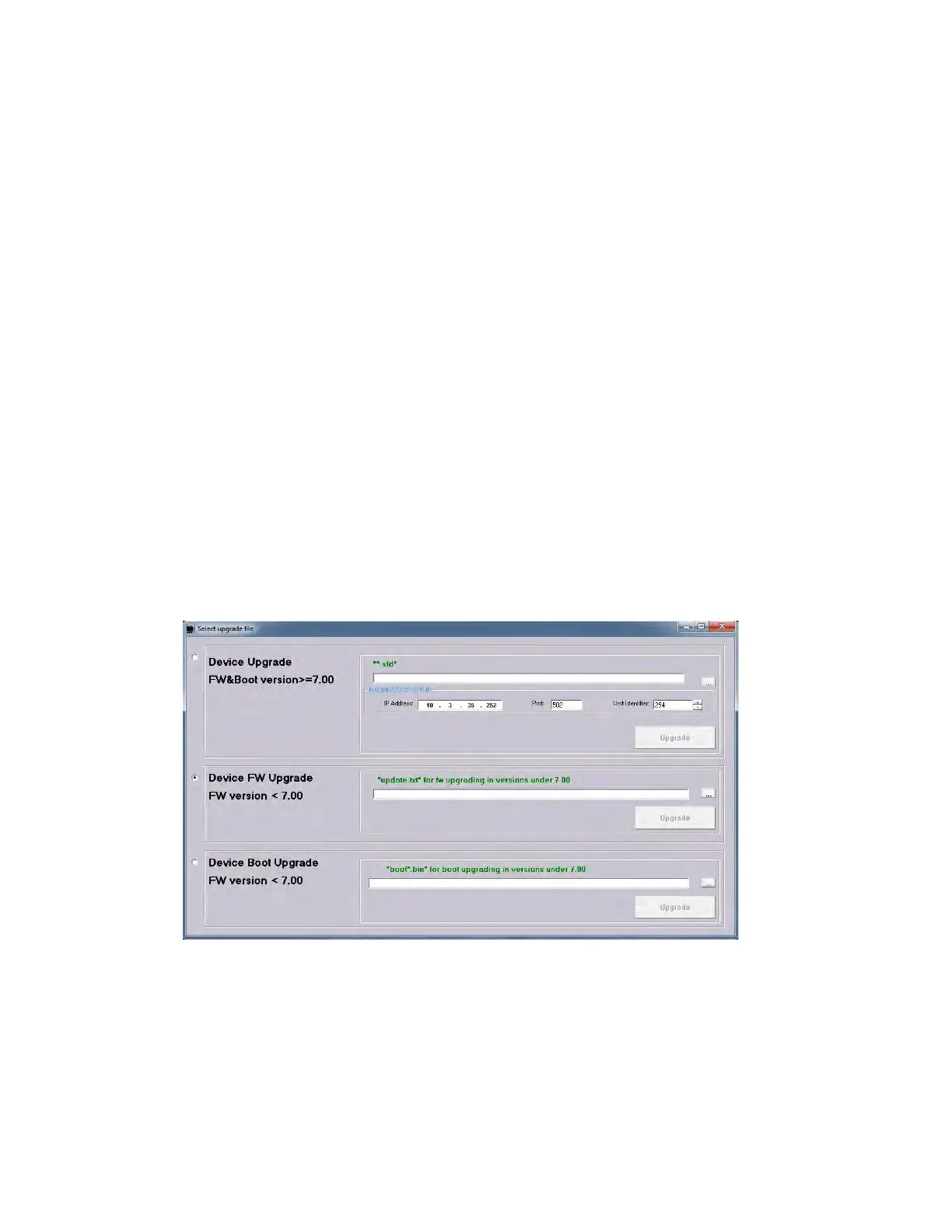 ersion <7.00 and click [...]. to browse for the new firmware file.