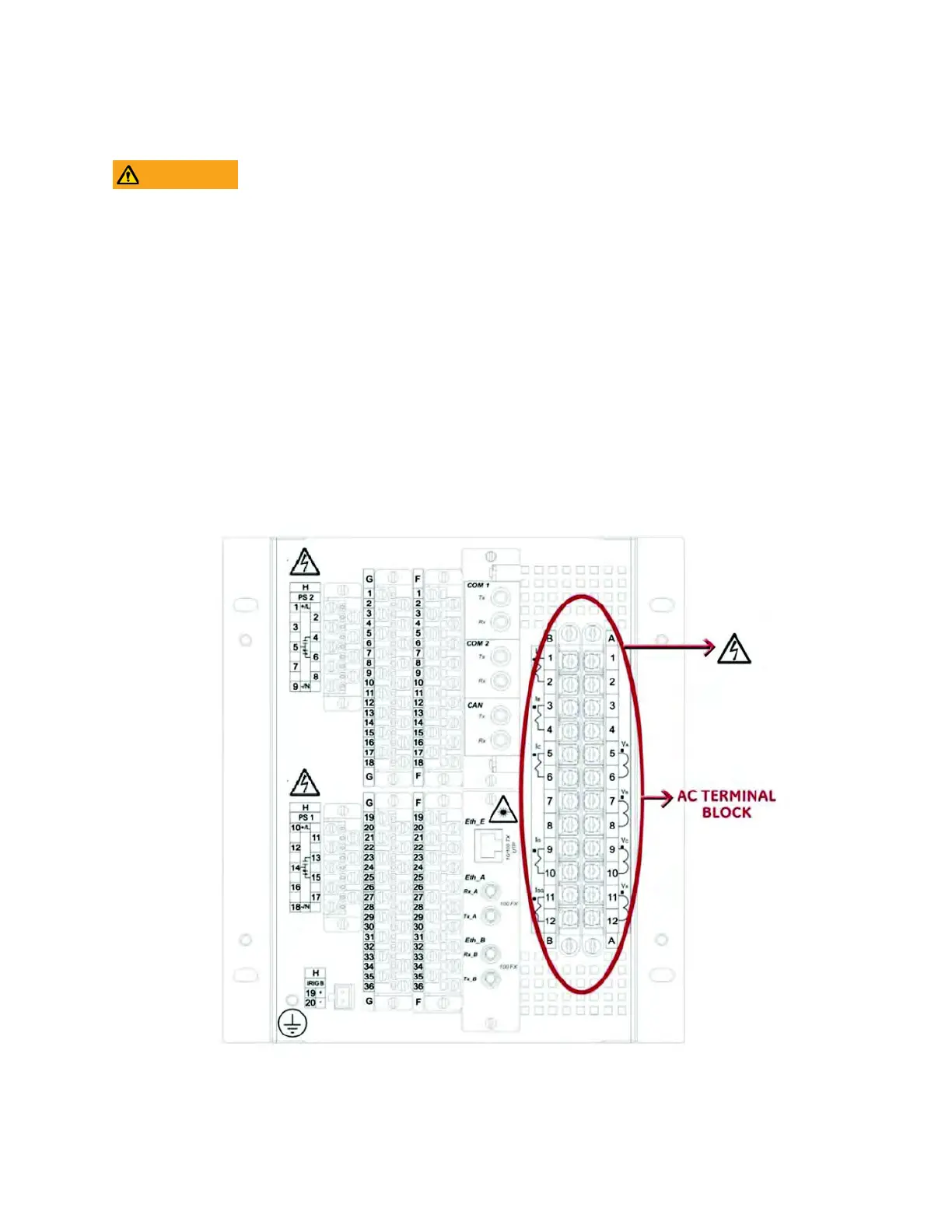 terminal board (columns A and B) The maximum tightening torque for the screws on terminal boards A and B is 1.2 Nm.
