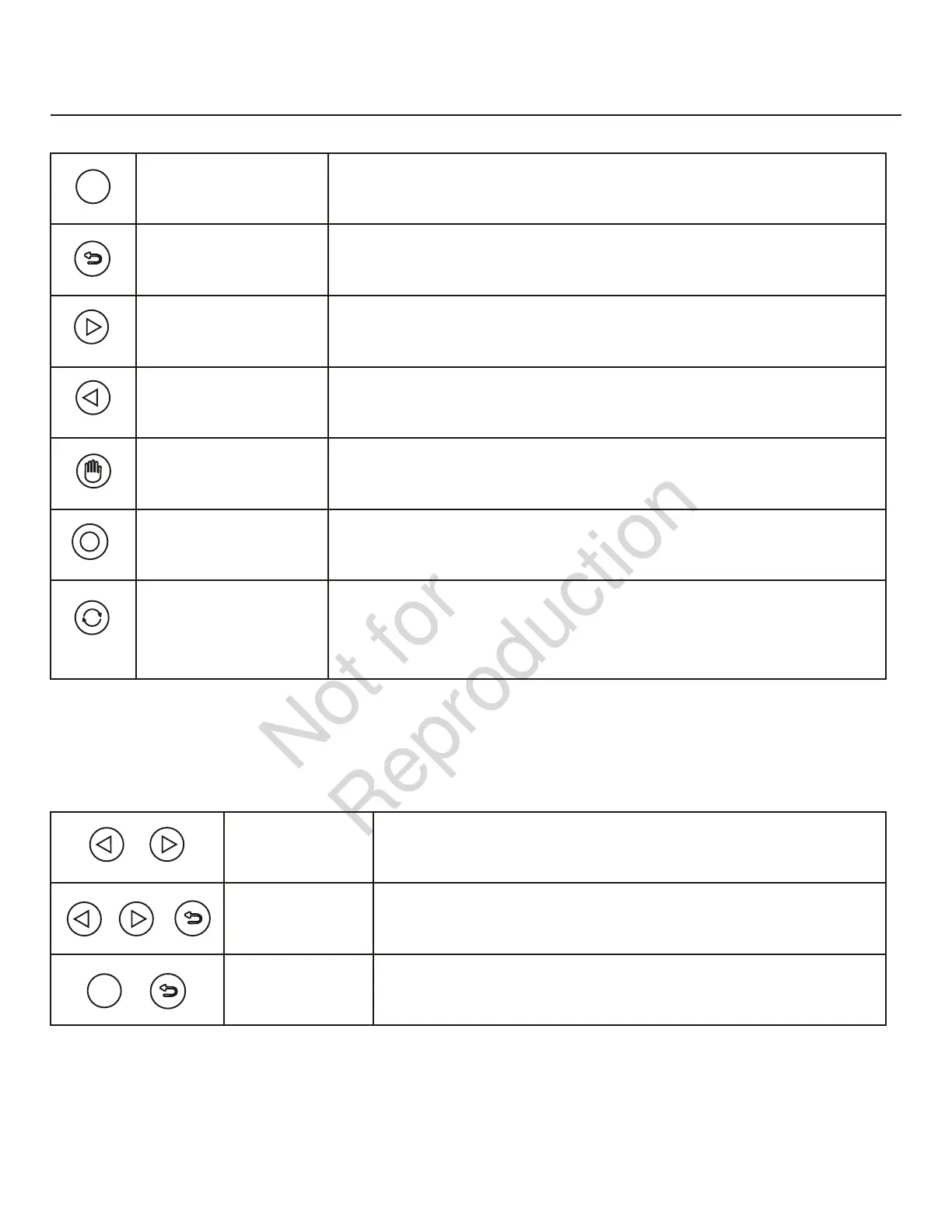 Le tableau suivant montre les icônes des boutons qui commandent le tableau de commande du système.