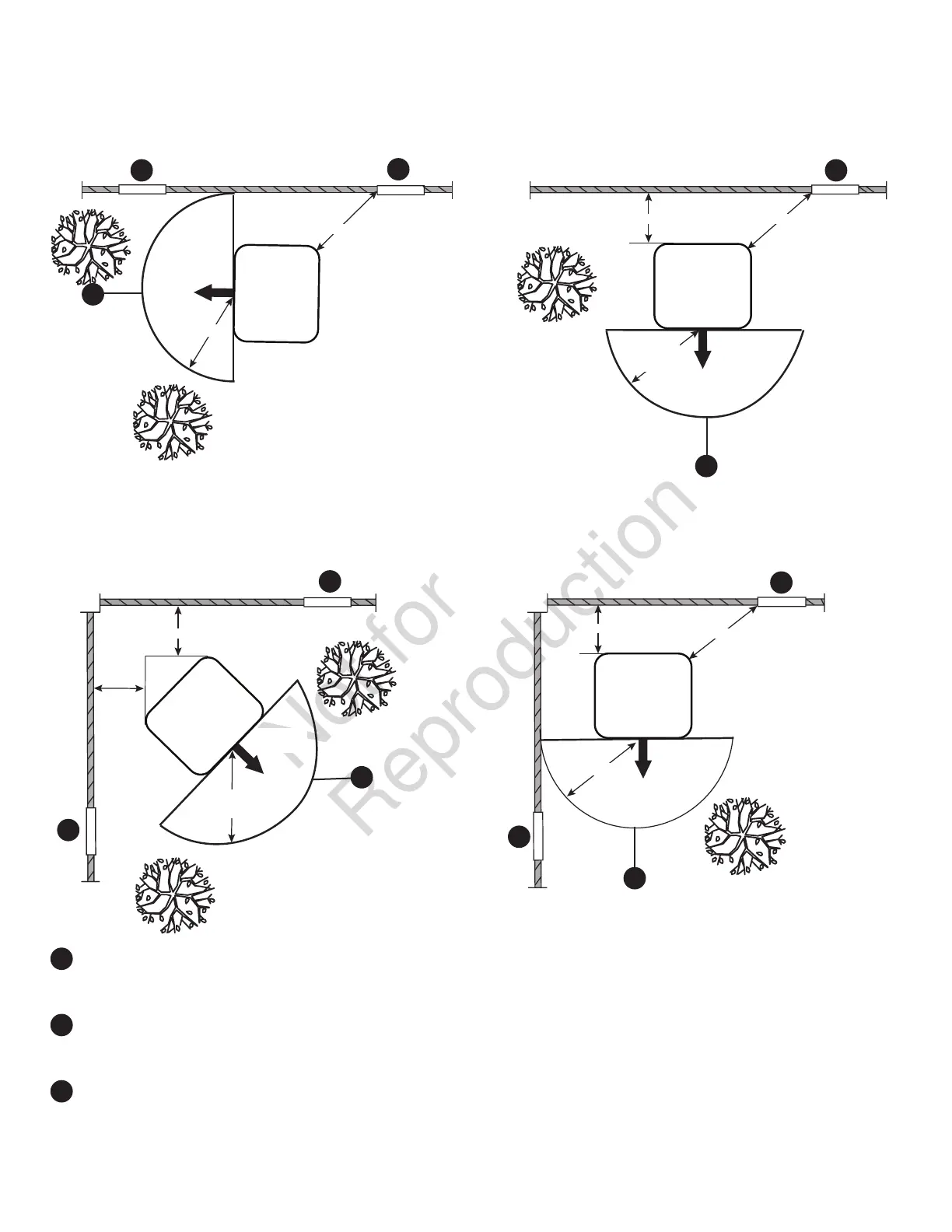 NOTICE The figures below show the minimum installation distances allowed to structures and items listed in legend.