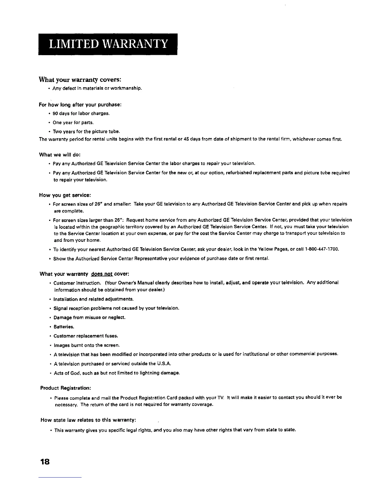 • Pay any Authorized GE Television Service Center the labor charges to repair your television.