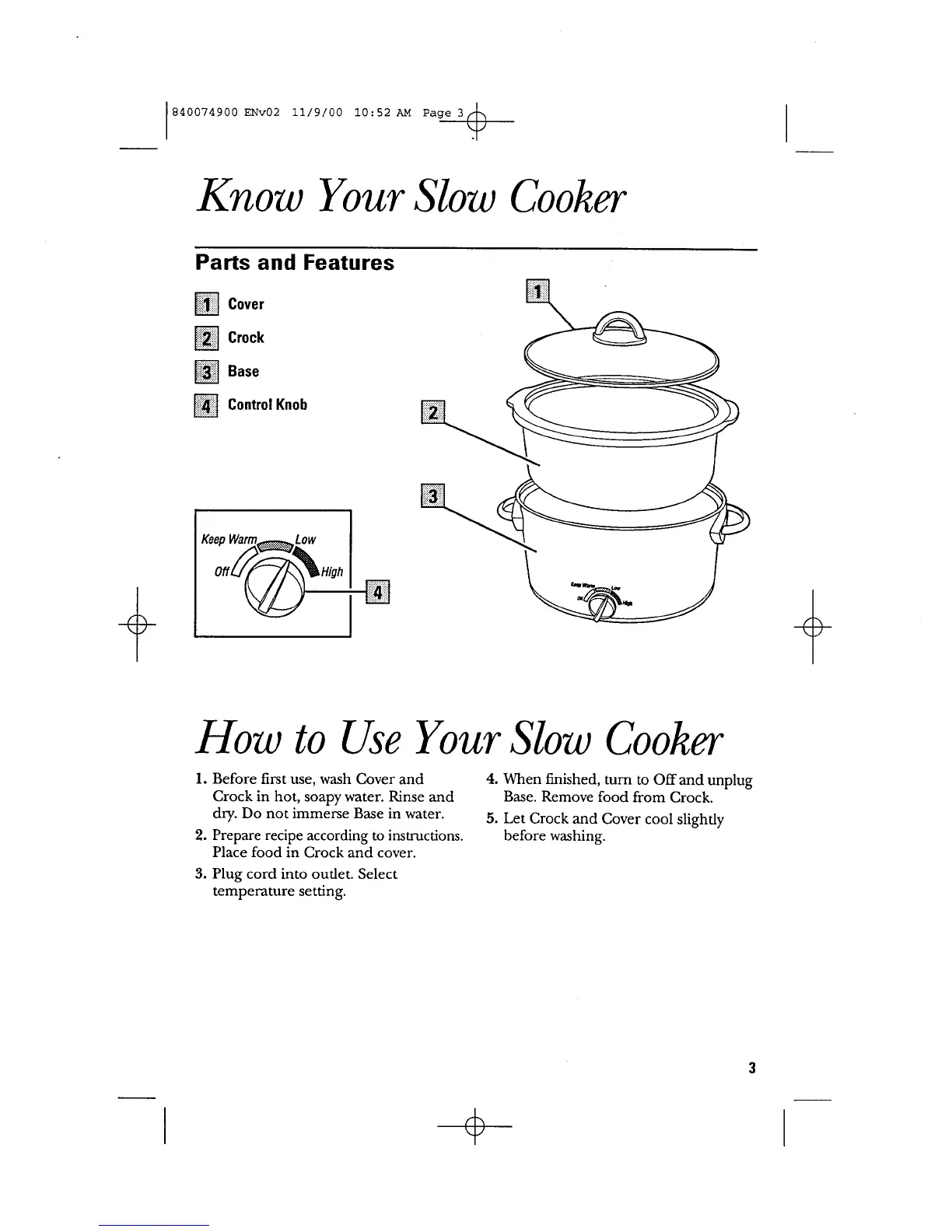 GE 106661 - Know Your Slow Cooker; Parts and Features; How to Use Your Slow Cooker