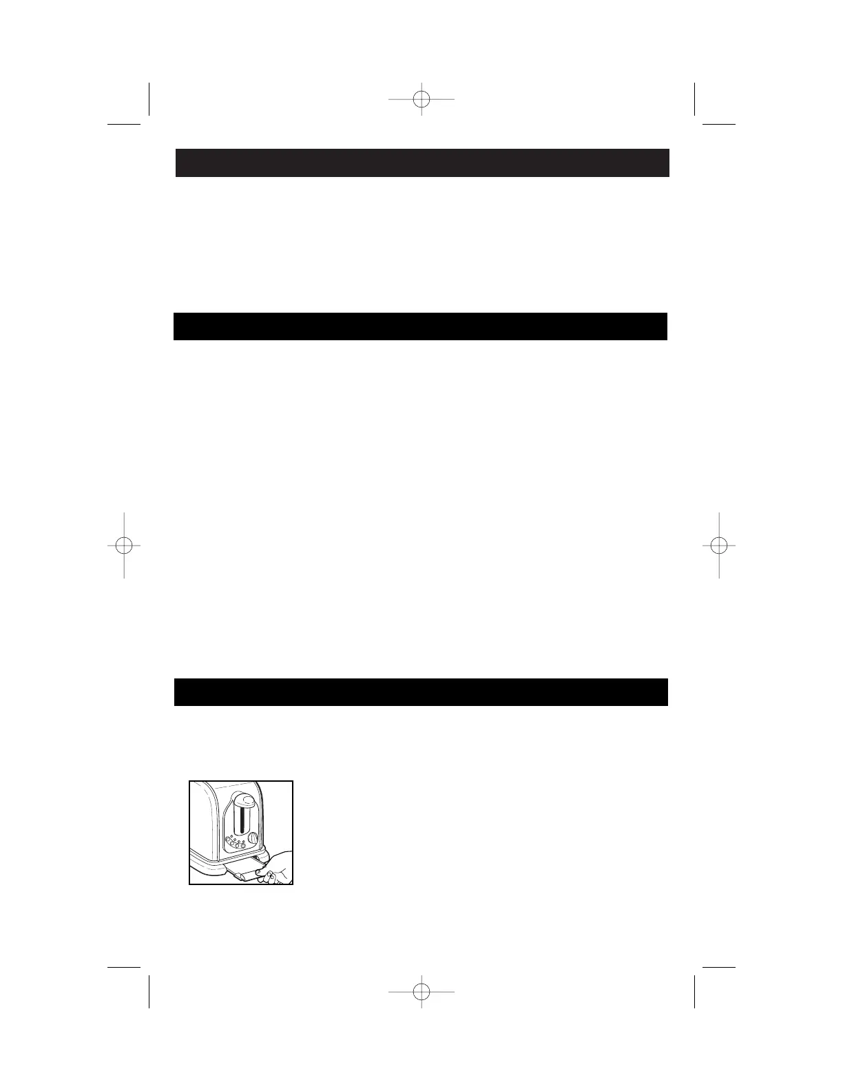 2. Slide open crumb tray, discard crumbs, and wipe tray with clean cloth. Replace