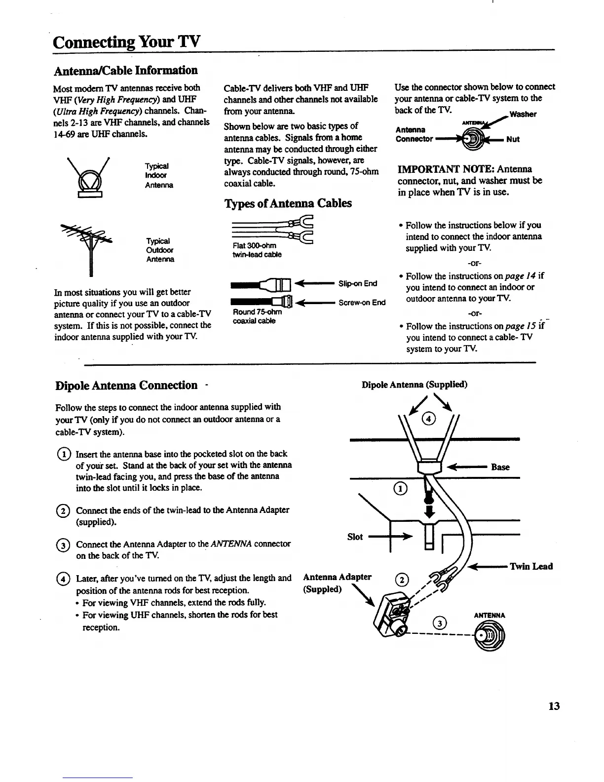your antenna or cable-TV system to the