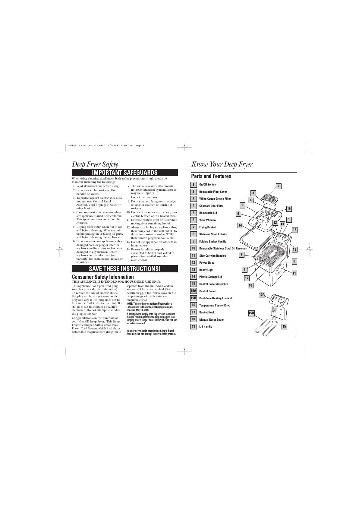 THIS APPLIANCE IS INTENDED FOR HOUSEHOLD USE ONLY.