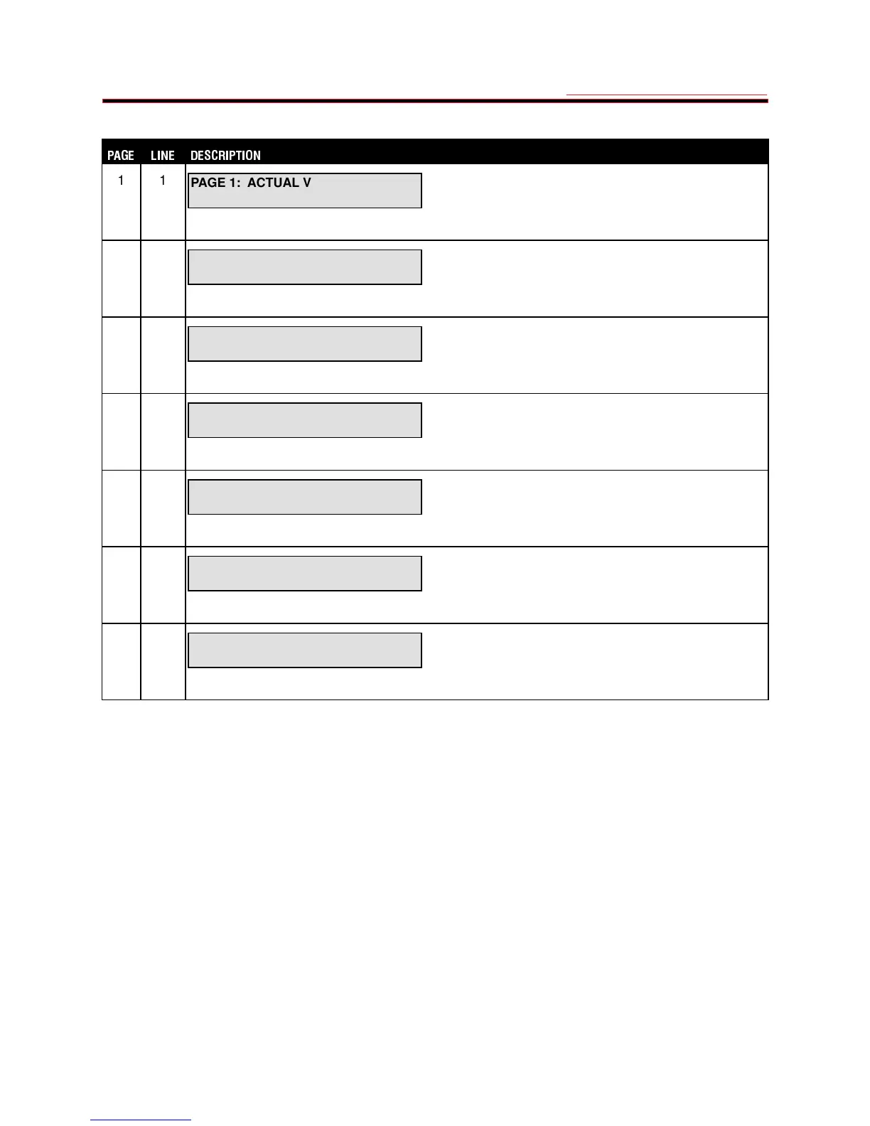 ACTUAL VALUES page 1 header.