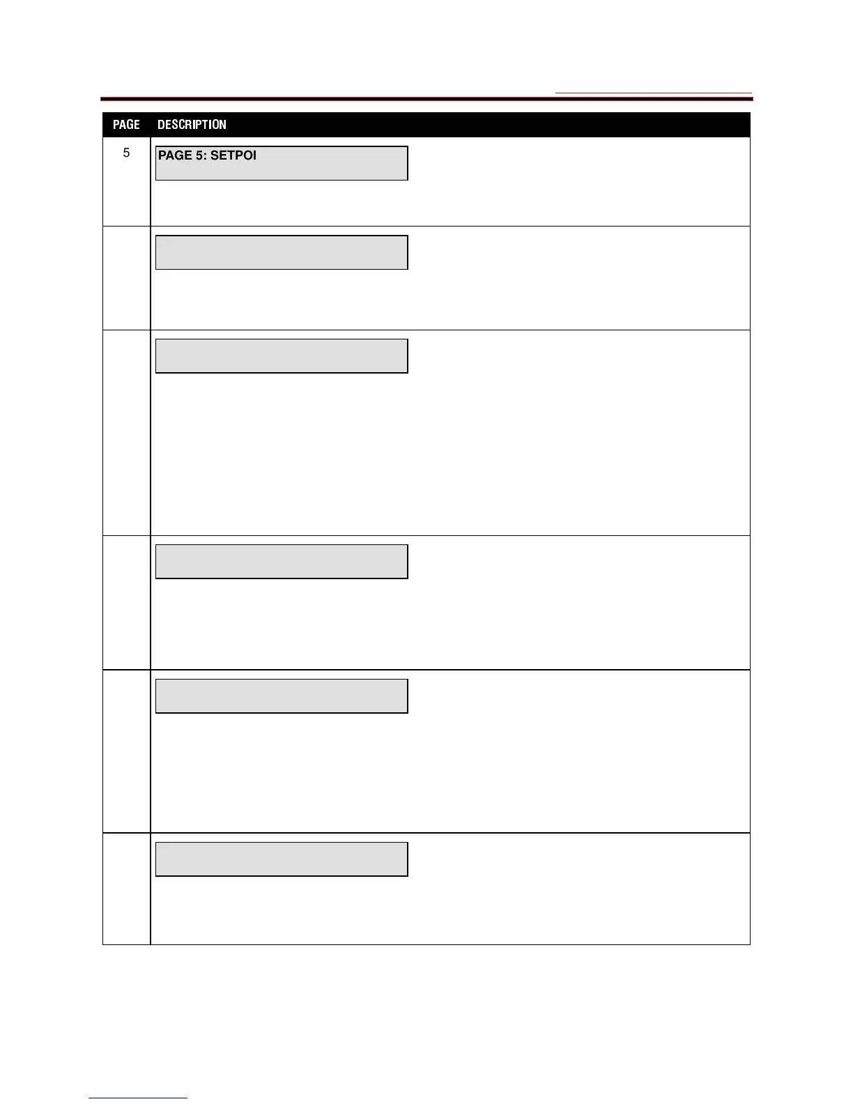 PAGE 5: SETPOINT VALUES