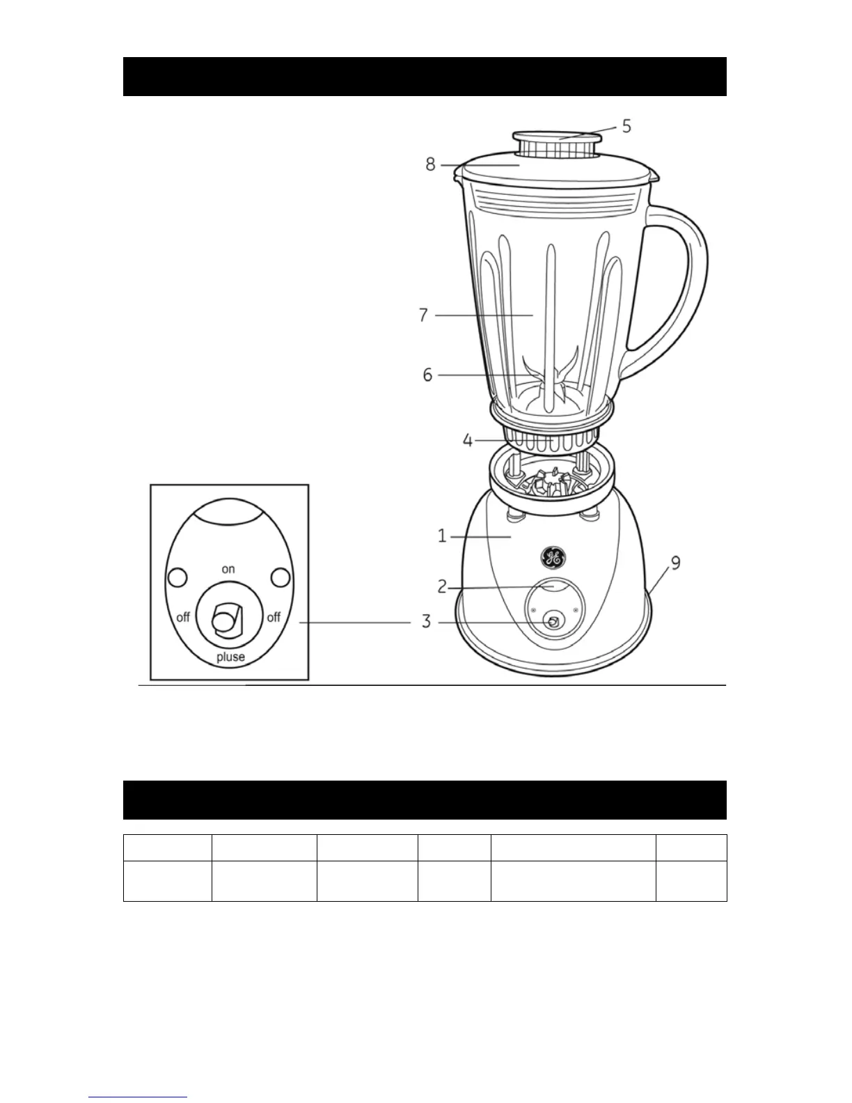 GE 169053 - Parts Identification; Blender Base; Power On Light; Power Switch