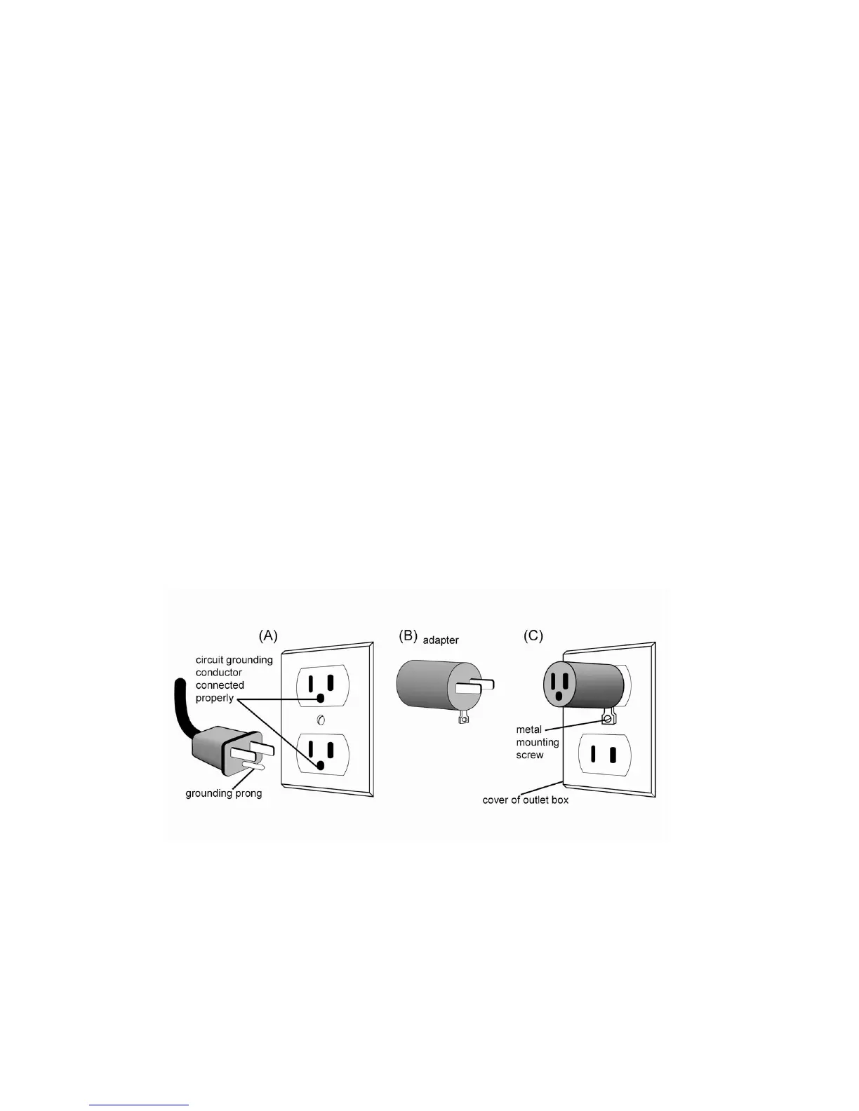 properly grounded outlet box as shown in Figure C, using a metal screw.