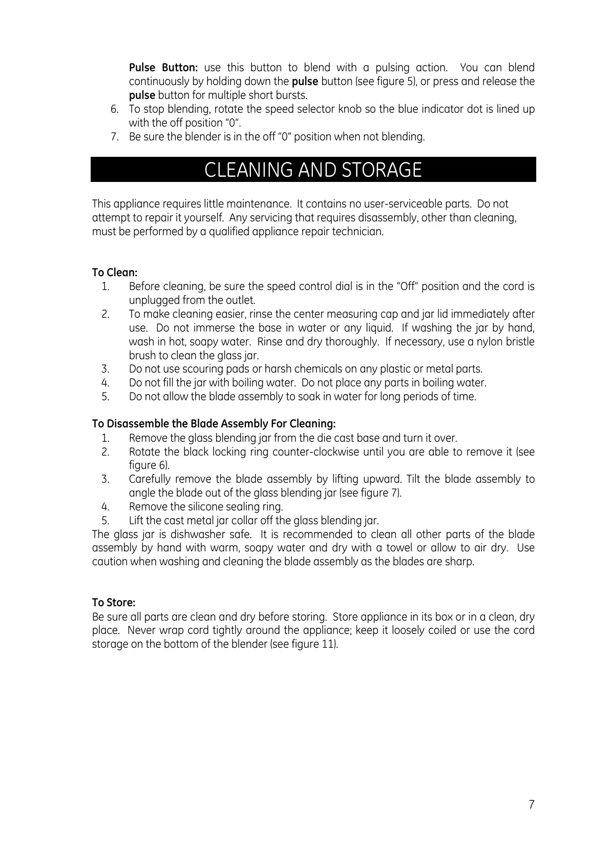 storage on the bottom of the blender (see figure 11).