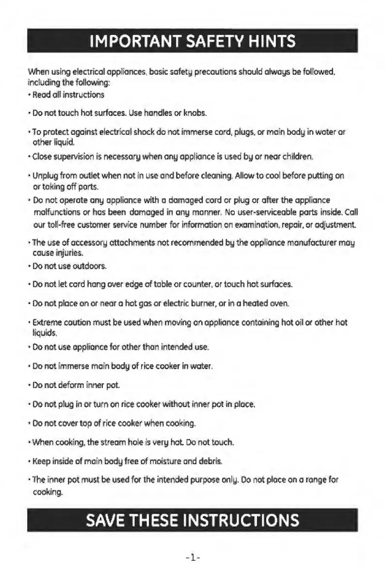 GE 169111 - Important Safety Hints; General Safety Precautions