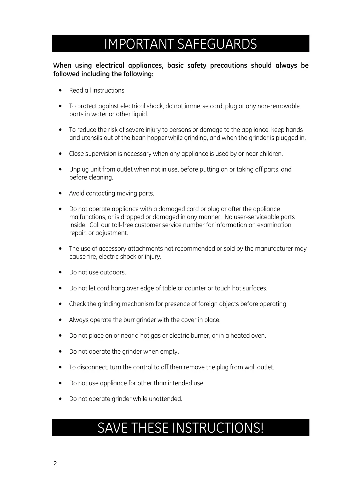 and utensils out of the bean hopper while grinding, and when the grinder is plugged in.